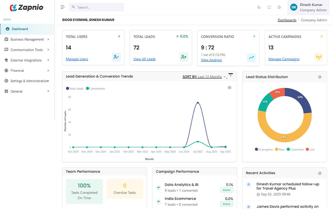 Indian businesses today juggle multiple tools, disconnected spreadsheets, and endless manual work. Zapnio brings everything into one powerful platform — where leads, campaigns, teams, and workflows connect seamlessly.